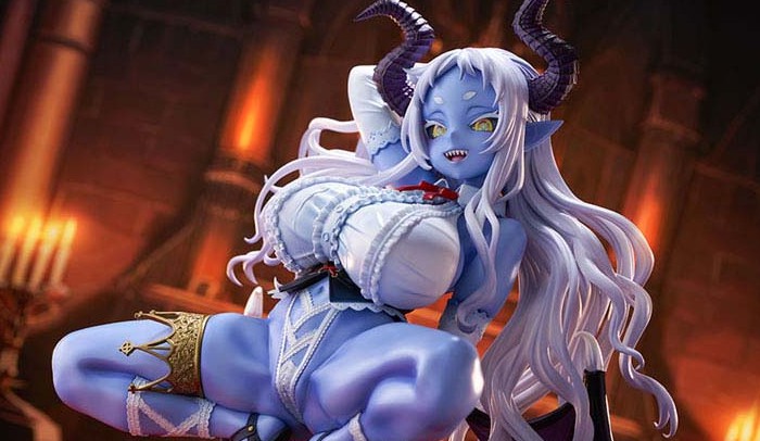 不釣り合いなほどのアンバランスボディと禍々しい角や羽を再現いたしました!神秘的な青い肌と生意気にもほどがある不吉な笑みの彼女を是非お迎えください!