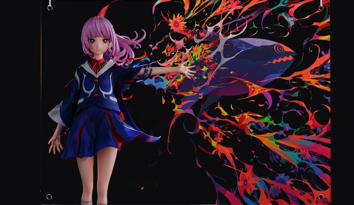 PALOW.氏の徹底監修のもと、風になびくスカートや特徴的なパーカー、そして繊細な髪の毛の一本一本まで、イラストの世界観を忠実に再現。光の当たり方や影の落ち方まで考慮した繊細なグラデーション彩色を施し、イラストが持つ幻想的な雰囲気を立体物として表現しました。特に、花譜さんのトレードマークである透き通るような髪の毛の質感や、衣装の光沢感は必見です。