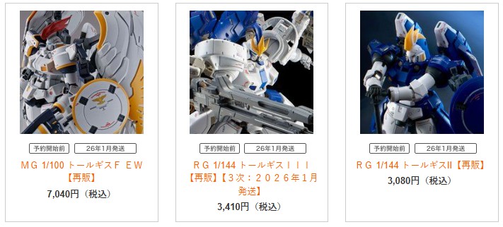 「MG トールギスF EW」「RG トールギスIII」など3点がプレバン限定で再販予約開始!