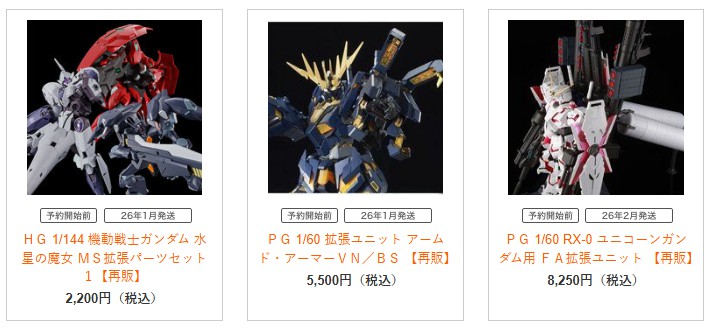 「PG ユニコーンガンダム用 FA拡張ユニット」「PG 拡張ユニット アームド・アーマーVN/BS」など3点がプレバン限定で再販予約開始!