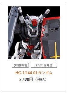 【ガンプラ新作】「HG 01ガンダム」がプレバン限定で予約開始! 2025.10.17 「HG 01ガンダム」がプレバン限定で予約開始! プレバン ガンプラ新作 HG 1/144 01ガンダム【2026年1月発送】 関連リンク ●プレミアムバンダイ ●バンダイホビーサイト
