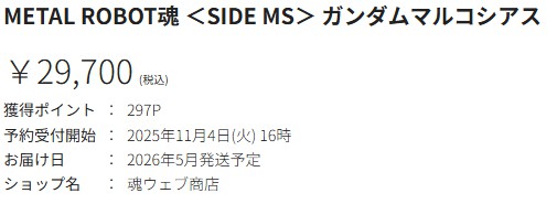 【新作予約】「METAL ROBOT魂 <SIDE MS> ガンダムマルコシアス」がプレバン限定で予約開始! 2025.11.04 「METAL ROBOT魂 <SIDE MS> ガンダムマルコシアス」がプレバン限定で予約開始! プレバン 新作フィギュア METAL ROBOT魂 <SIDE MS> ガンダムマルコシアス【2026年5月発送】 関連リンク ●プレミアムバンダイ ●魂ウェブ 公式サイト