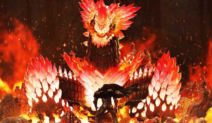 そして造形と彩色に並ぶ本作の表現手法が、内蔵したLEDユニットです。「炎の巨竜」の異名通りに輝くグルンベルド。平穏な森を焼き尽くす火の手。漫画の臨場感がディスプレイに宿ります。