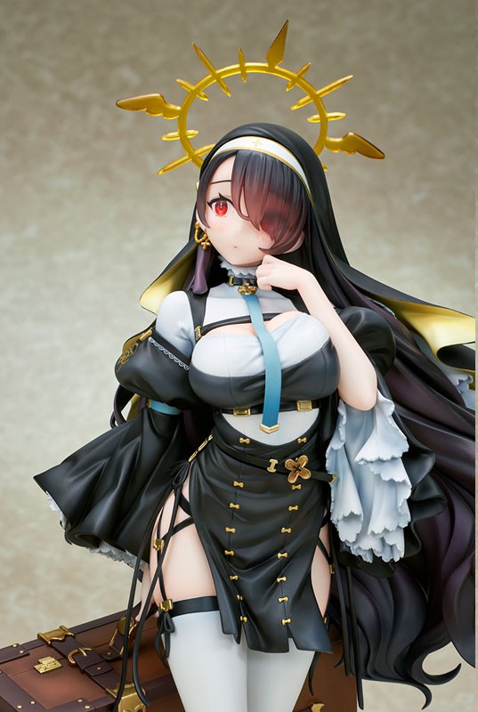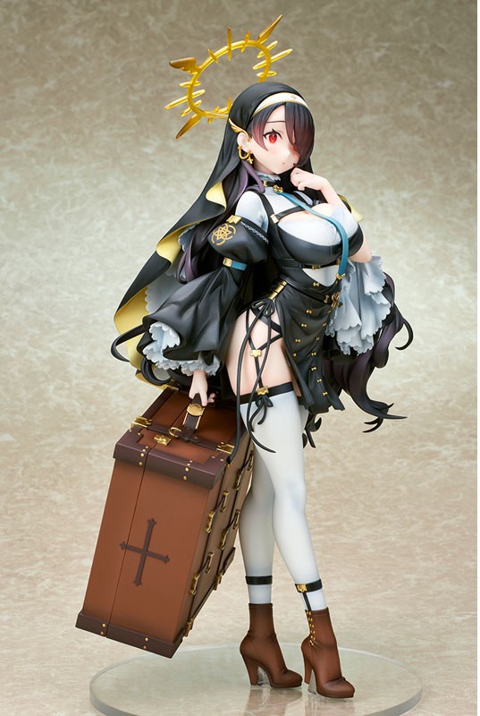 人気ゲーム「ブルーアーカイブ -Blue Archive-」から、トリニティ総合学園3年、ヒナタが登場!シスターフッド部員らしく黒衣の修道服に身を包み、ロングヘアと巨大なトランクが合わさって非常にボリューミーなフィギュアになりました。