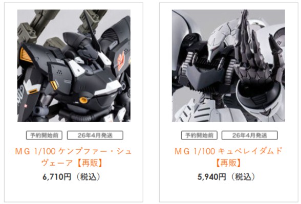 【ガンプラ再販】「MG ケンプファー・シュヴェーア」と「MG キュベレイダムド」がプレバン限定で再販予約開始! 2026.01.07 「MG ケンプファー・シュヴェーア」と「MG キュベレイダムド」がプレバン限定で再販予約開始! プレバン ガンプラ再販 MG 1/100 ケンプファー・シュヴェーア【再販】【4月発送】 MG 1/100 キュベレイダムド【再販】【4月発送】 関連リンク ●プレミアムバンダイ ●バンダイホビーサイト