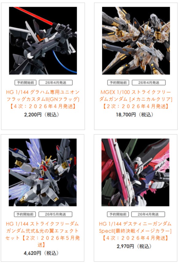 【ガンプラ再販】「MGEX ストライクフリーダムガンダム [メカニカルクリア]【2次】」など4点がプレバン限定で予約開始! 2026.01.14 「MGEX ストライクフリーダムガンダム [メカニカルクリア]【2次】」など4点がプレバン限定で予約開始! プレバン ガンプラ再販 MGEX 1/100 ストライクフリーダムガンダム [メカニカルクリア]【2次】【4月発送】 HG 1/144 グラハム専用ユニオンフラッグカスタムII(GNフラッグ)【4次】【4月発送】 HG 1/144 デスティニーガンダムSpecII[最終決戦イメージカラー]【4次】【4月発送】 HG 1/144 ストライクフリーダムガンダム弐式&光の翼エフェクトセット【2次】【5月発送】 関連リンク ●プレミアムバンダイ ●バンダイホビーサイト