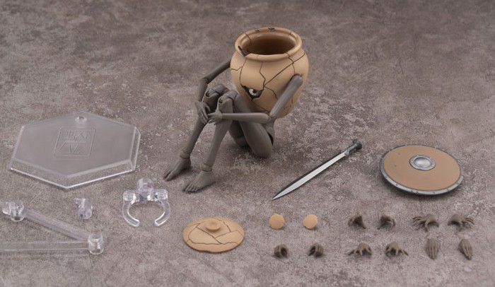・付属の蓋は、壺の開口部に閉めることができるほか、物持ち手に持たせるなどの遊び方も可能です。本体の両腕パーツを外してカバーパーツに付け替えると、壺の外観に隙間がなく、一体感のある見た目になります。