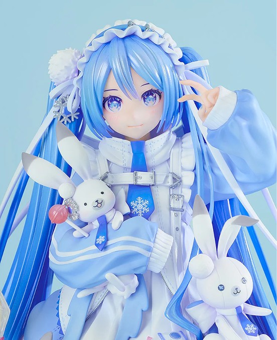 『キャラクター・ボーカル・シリーズ01 初音ミク』より、雪ミク スカイタウンオープン10周年を記念してイラストレーターのiXima氏によって描かれた記念ビジュアルが1/7スケールフィギュア化。ふわふわのクッションのうえにちょこんと座った雪ミクを、ラビット・ユキネや可愛い小物達と一緒に丁寧に立体化いたしました。
