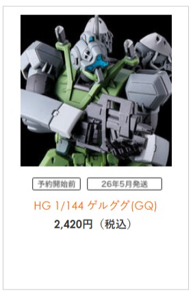 【ガンプラ新作】「HG 1/144 ゲルググ(GQ)」がプレバン限定で12時より予約開始! 2026.02.13 「HG 1/144 ゲルググ(GQ)」がプレバン限定で予約開始! プレバン ガンプラ 新作 HG 1/144 ゲルググ(GQ)【5月発送】 関連リンク ●プレミアムバンダイ ●バンダイホビーサイト