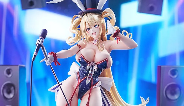 大人気スマートフォンゲーム『アズールレーン』より、ユニオン所属の超巡洋艦「グアム」が、着せ替え衣装「チャーミング・ステージング」の姿で立体化。バニーガールをベースにした、華やかなステージ衣装を細部まで再現しました。