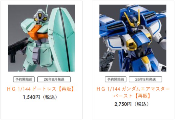 【ガンプラ再販】「HG ガンダムエアマスターバースト」と「HG ドートレス」がプレバン限定で11時より再販予約開始! 2026.02.24 「HG ガンダムエアマスターバースト」と「HG ドートレス」がプレバン限定で11時より再販予約開始! プレバン ガンプラ再販 HG 1/144 ガンダムエアマスターバースト【8月発送】 HG 1/144 ドートレス【8月発送】 関連リンク ●プレミアムバンダイ ●バンダイホビーサイト