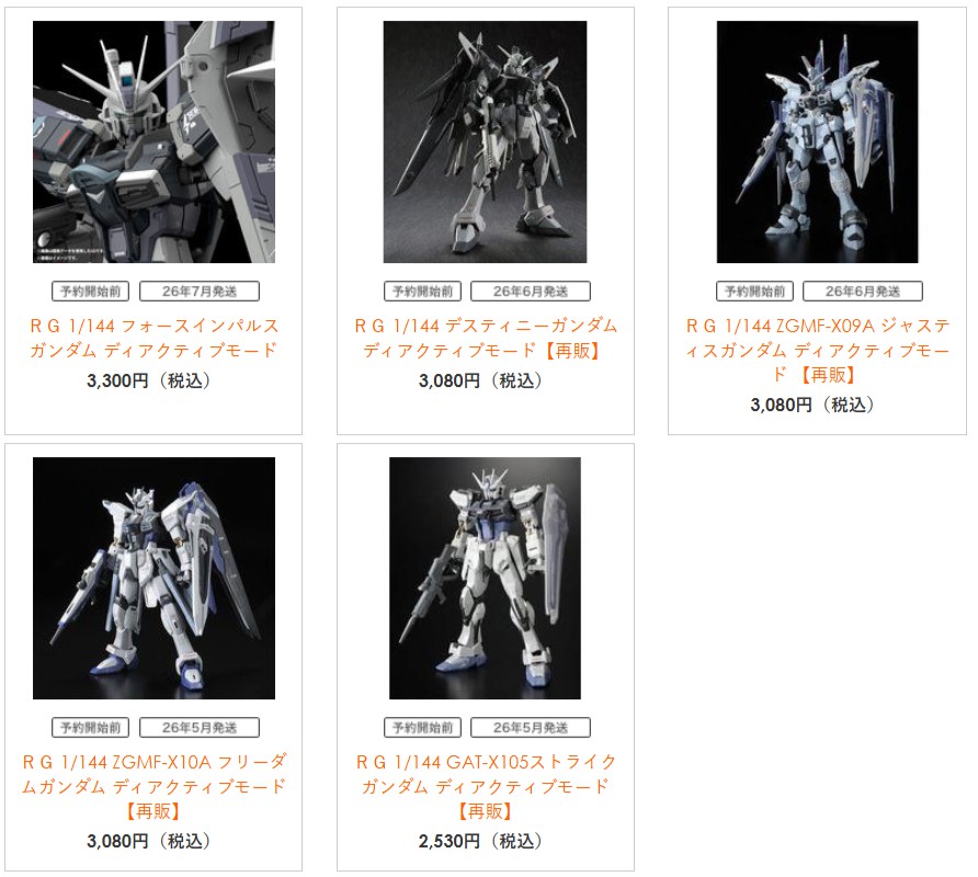 「RG フォースインパルスガンダム ディアクティブモード」や「RG フリーダムガンダム ディアクティブモード【再販】」など5点がプレバン限定で予約開始!
