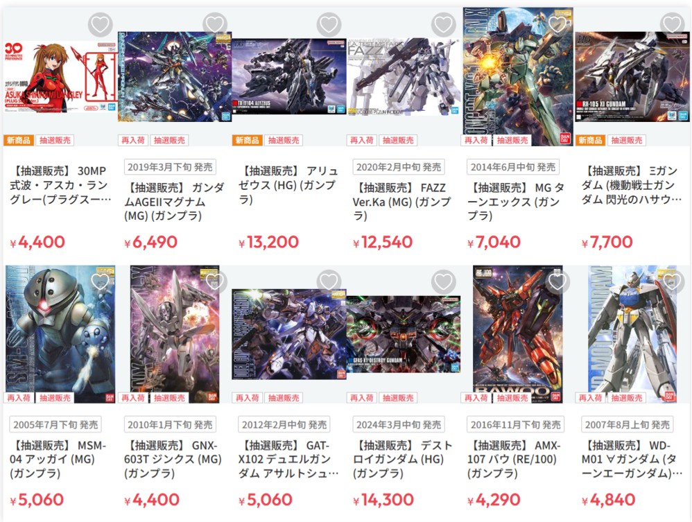 ホビーサーチ ガンプラ/プラモデル 抽選受付まとめ
