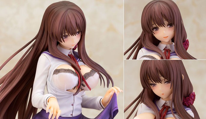 メロンブックスタペストリーの美麗な元イラストをモチーフに、制服をたくしあげ屋外露出を試みる蠱惑的な姿態を立体化いたしました。