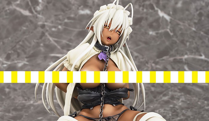 ずらされた下着から局部がチラリと覗くデフォルト状態の下半身は下着の着脱なしの仕様を活かし、下着が体に食い込む肉感表現に力を入れて造形。右脚に掛けられたエプロンと半脱ぎ状態のスカートは着脱可能、また首輪も取り外すことが可能で、 首輪を残して金属製のチェーンのみを取り外すことも可能となります。